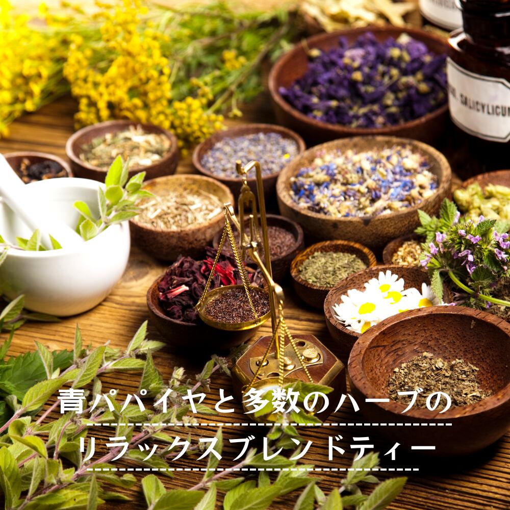 ✅原材料:青パパイヤ(宮崎県産)、カモミール、リンデン、レモングラス、ペパーミント、レモンバーベナ、ローズマリー